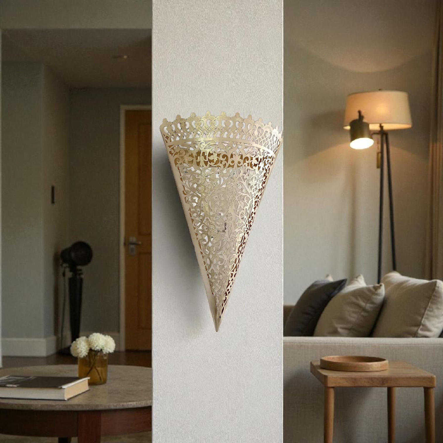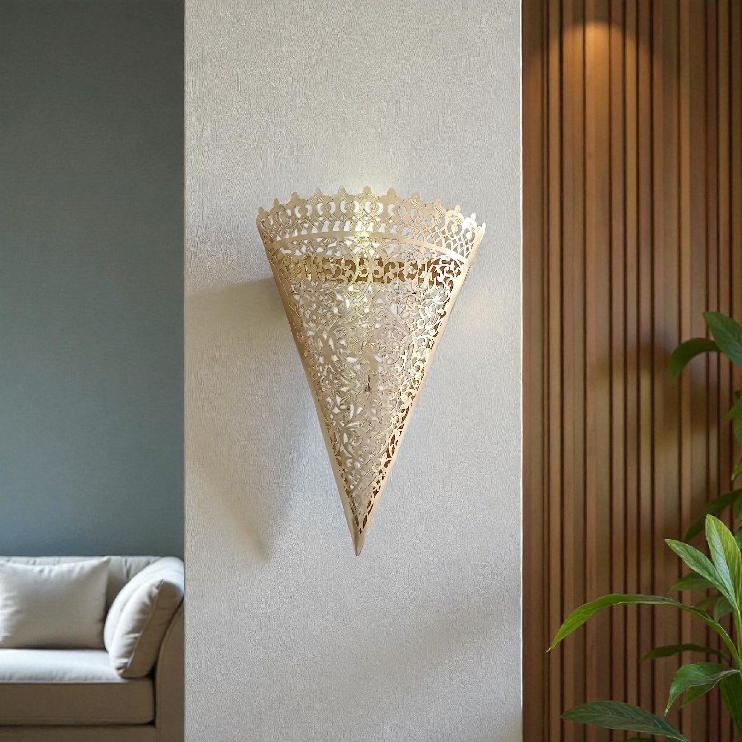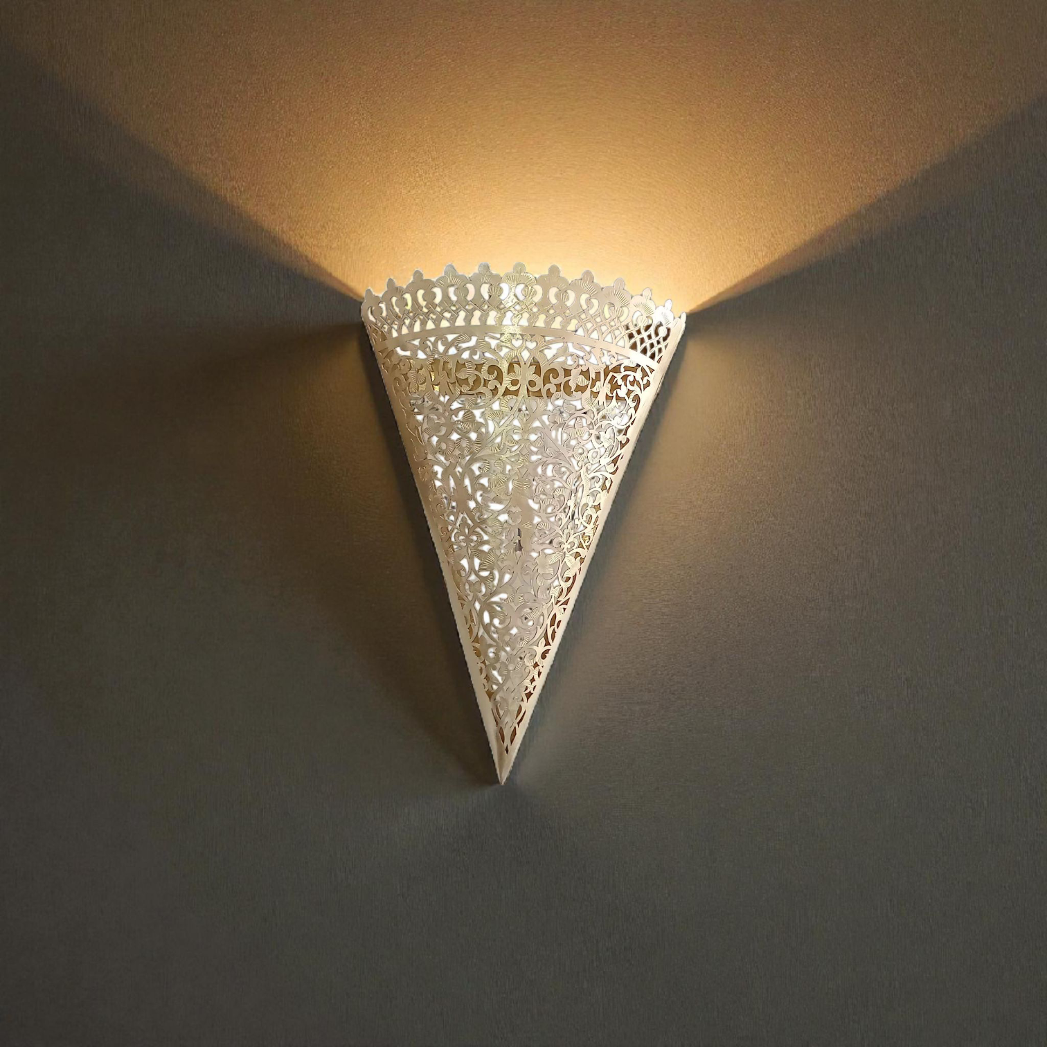 Applique Murale Marocaine Conique en Cuivre Ajouré (30 x 19 cm)