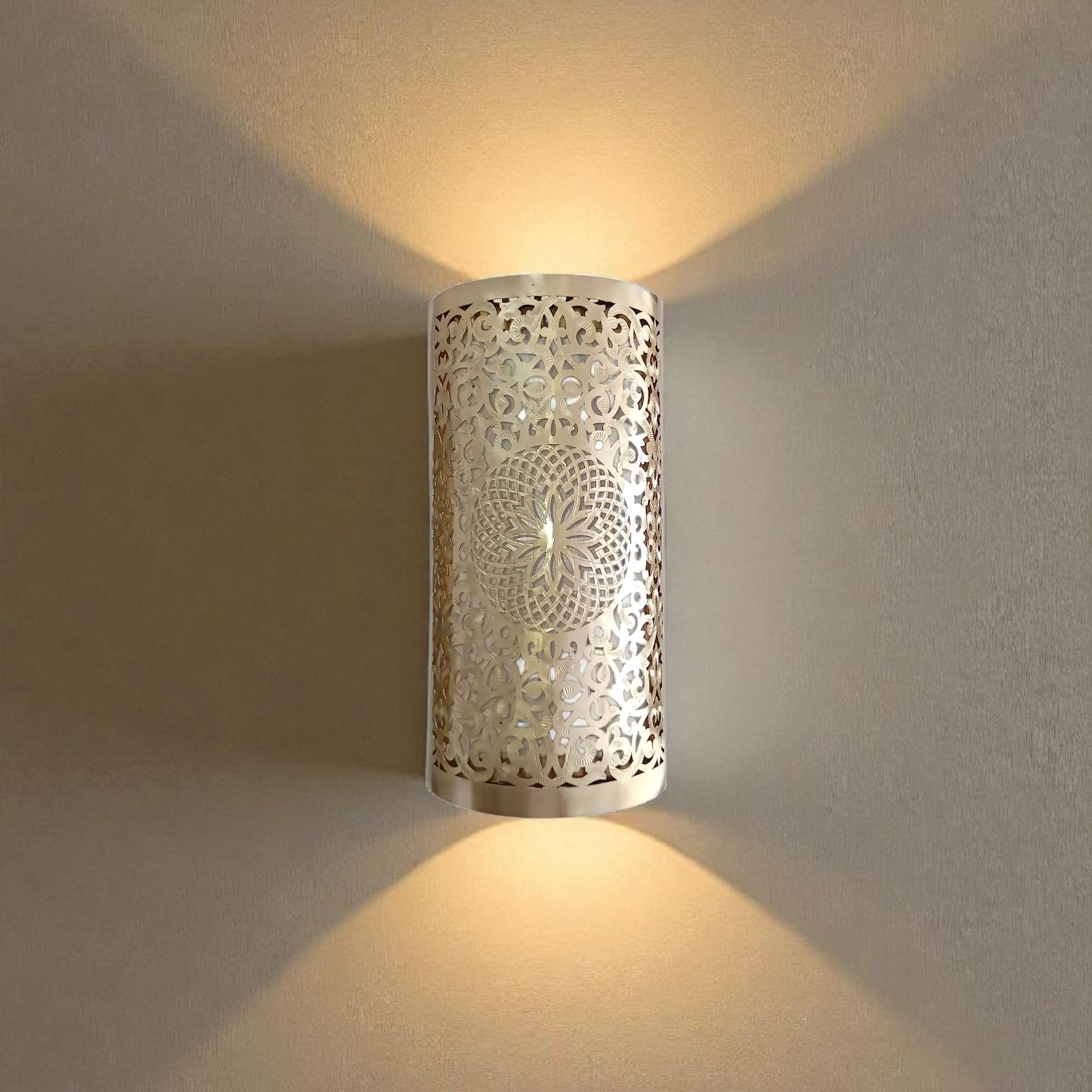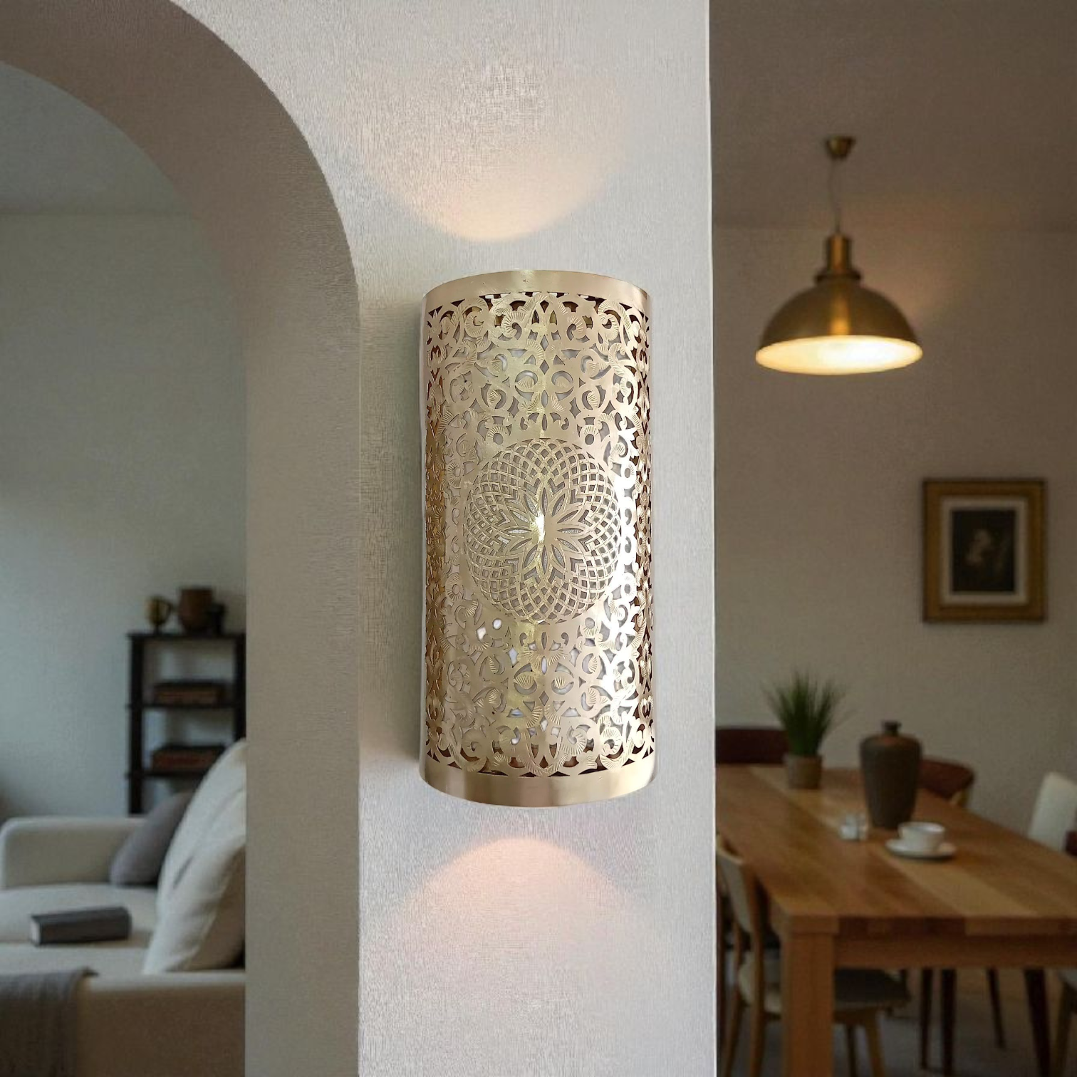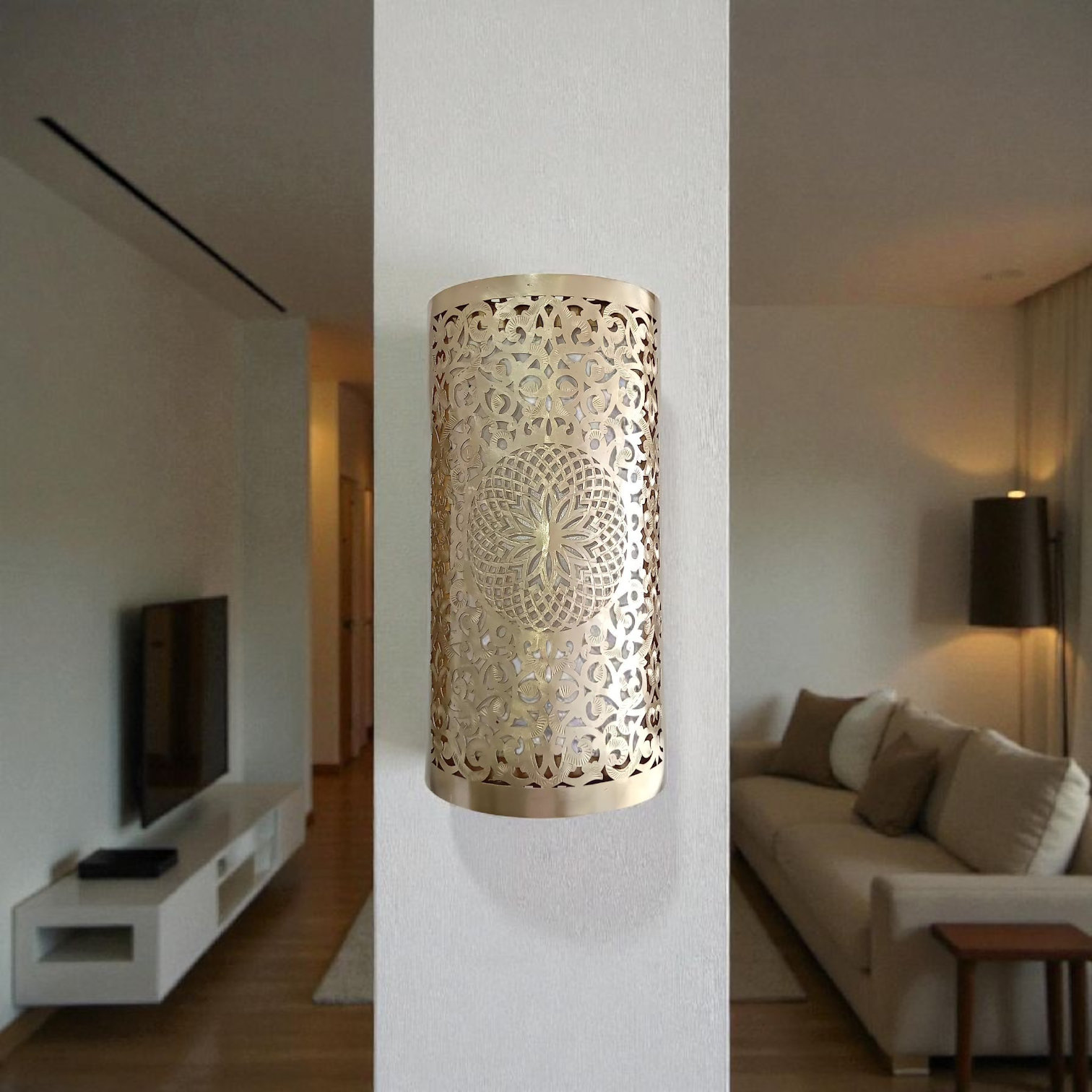 Applique Murale Marocaine Cylindrique en Cuivre Ajouré (30 x 15 cm)