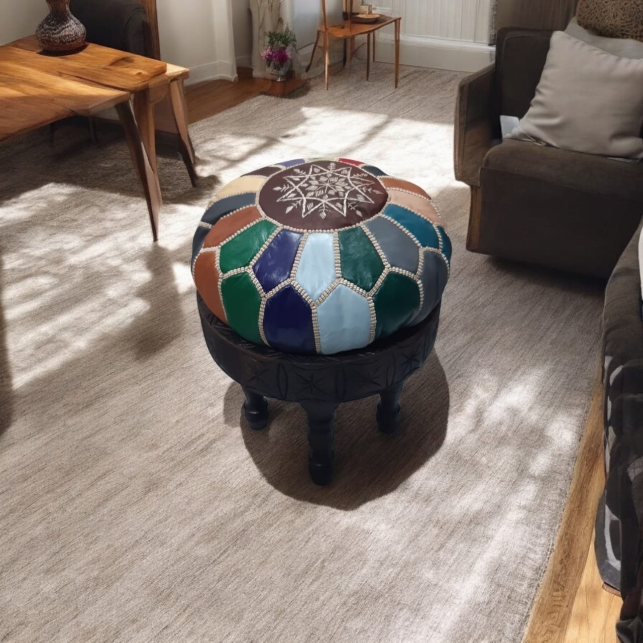 Découvrez l’élégance de l’artisanat marocain avec ce Coussin Cuir Multicolore, conçue à la main dans les ateliers d’artisans talentueux. Son coussin en cuir multicolore apporte une touche vive et artistique, idéale pour illuminer vos espaces de vie. Parfaite comme table d’appoint ou élément décoratif, cette pièce unique reflète le savoir-faire marocain et s’adapte à tout style d’intérieur.