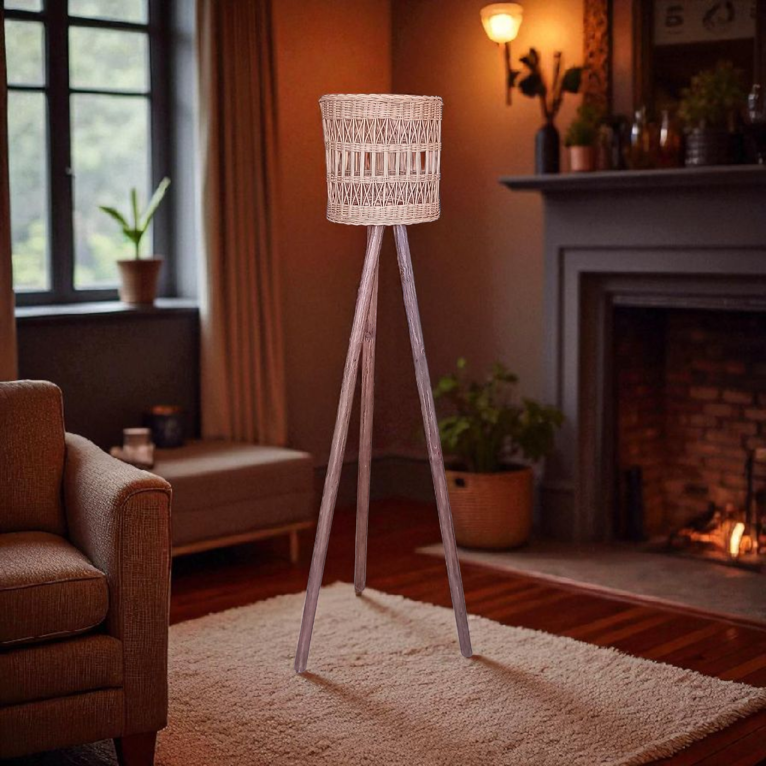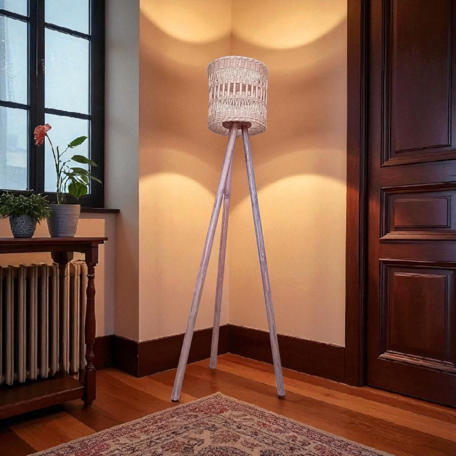 🪔 Lampadaire bois & applique rotin naturel