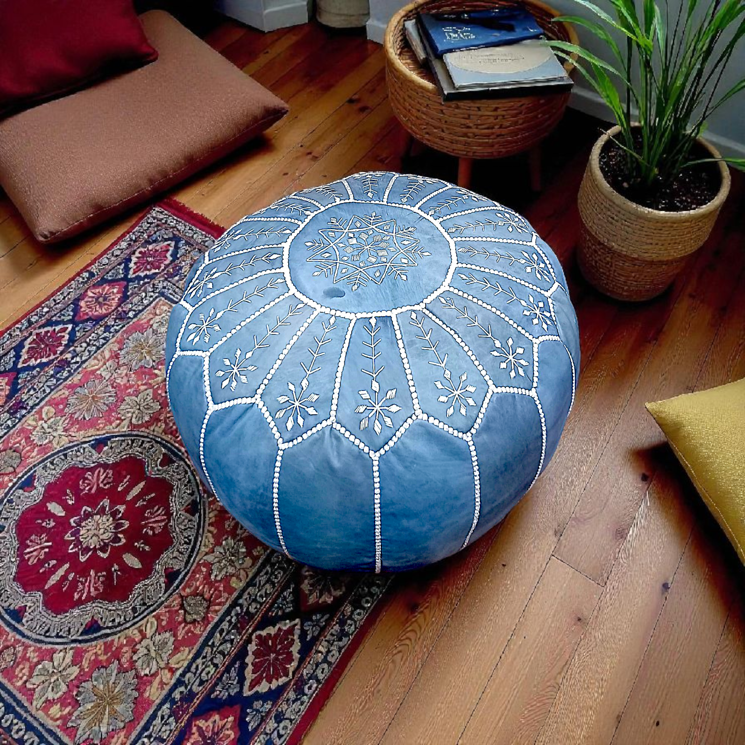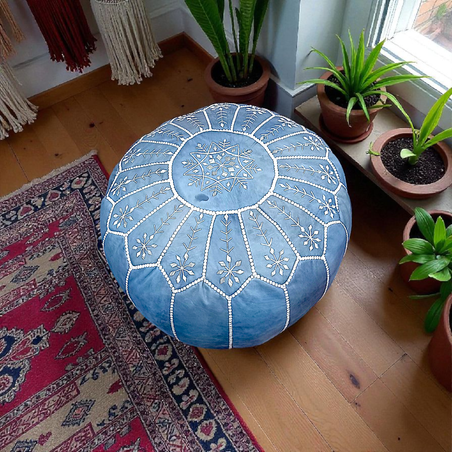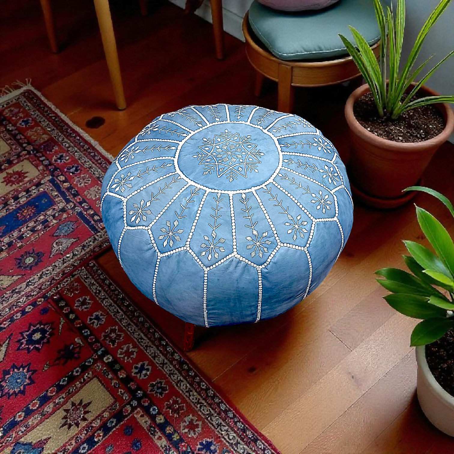 Ce pouf en cuir naturel de 50 cm est une pièce incontournable pour les amateurs de décoration intérieure. Fait main par des artisans marocains, il allie qualité, durabilité et charme intemporel. Avec son design polyvalent, il s’adapte parfaitement à tout style d’intérieur, que ce soit pour un salon, une chambre ou un espace détente. Idéal comme siège d’appoint, repose-pieds ou élément décoratif, ce pouf est un choix alliant fonctionnalité et esthétique. Pouf livré avec rembourrage (remplissage).