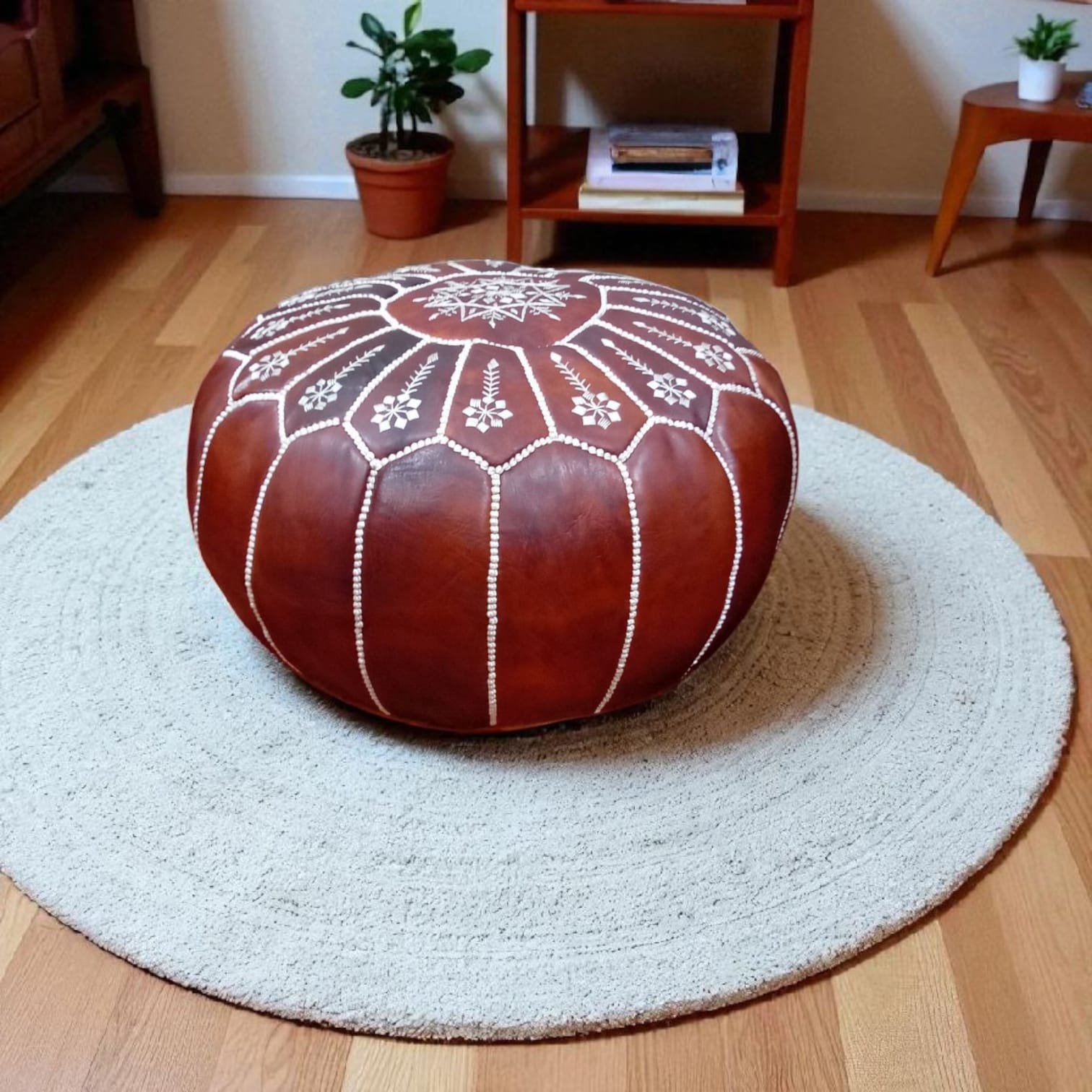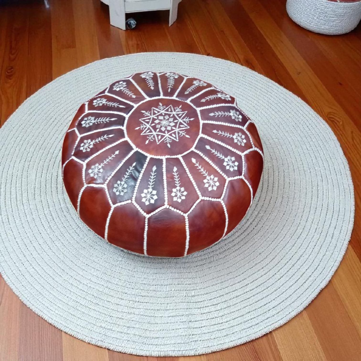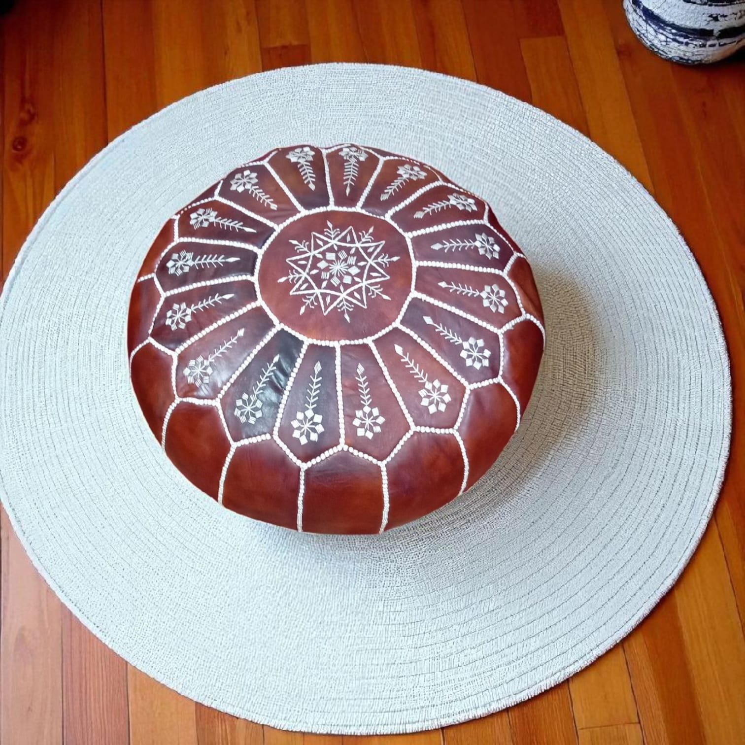 Ce pouf en cuir naturel de 50 cm est une pièce incontournable pour les amateurs de décoration intérieure. Fait main par des artisans marocains, il allie qualité, durabilité et charme intemporel. Avec son design polyvalent, il s’adapte parfaitement à tout style d’intérieur, que ce soit pour un salon, une chambre ou un espace détente. Idéal comme siège d’appoint, repose-pieds ou élément décoratif, ce pouf est un choix alliant fonctionnalité et esthétique. Pouf livré sans rembourrage (remplissage).
