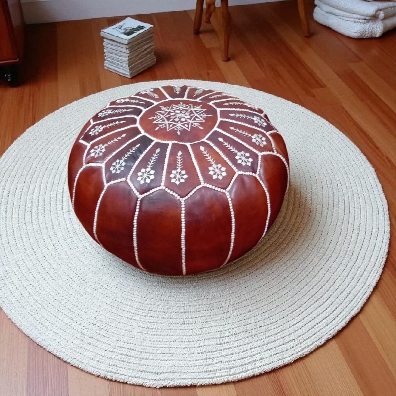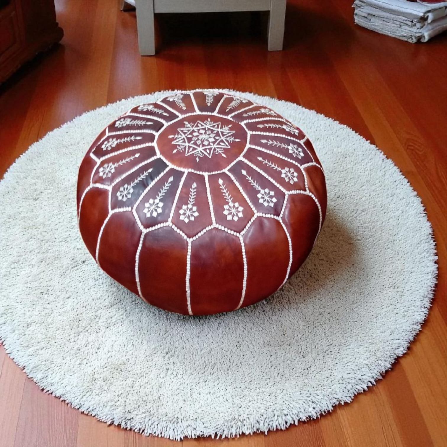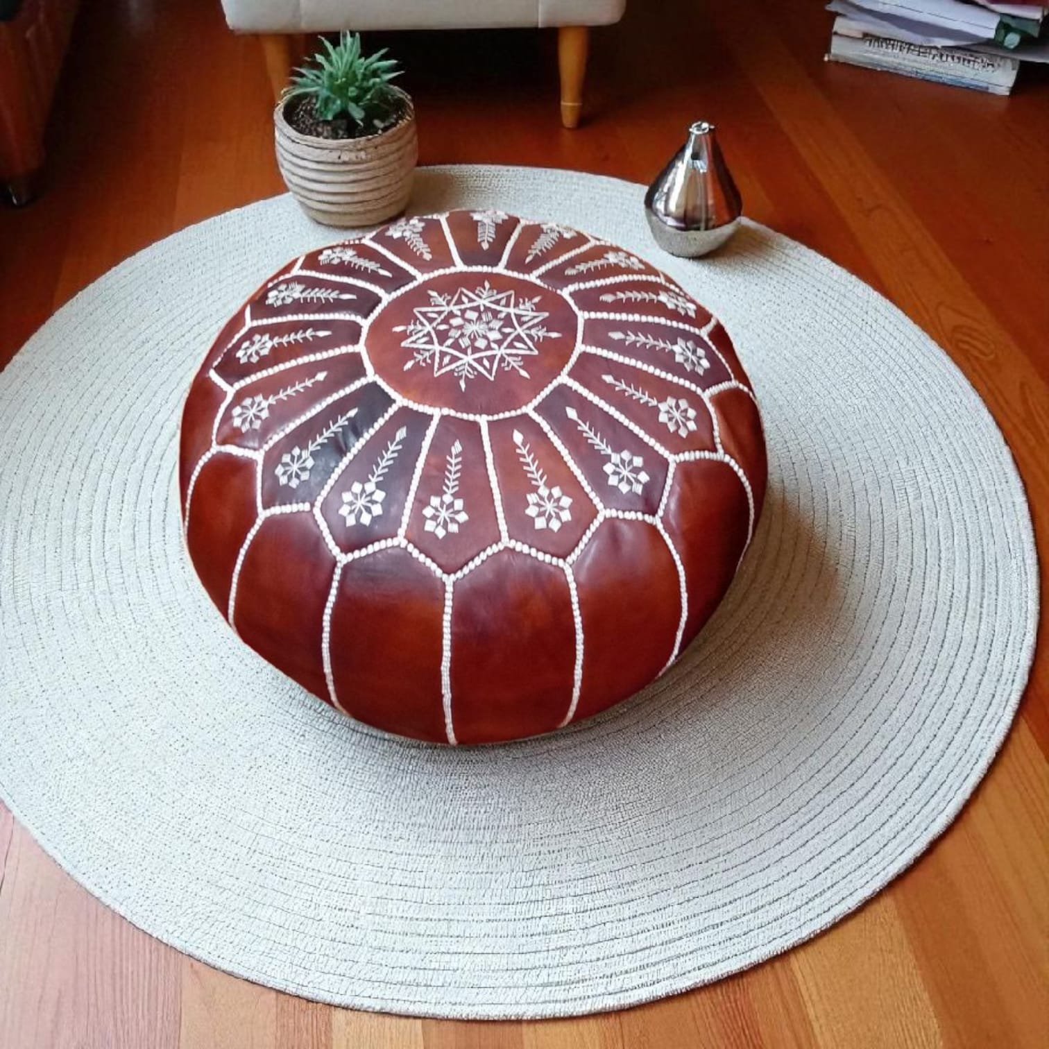 Ce pouf en cuir naturel de 50 cm est une pièce incontournable pour les amateurs de décoration intérieure. Fait main par des artisans marocains, il allie qualité, durabilité et charme intemporel. Avec son design polyvalent, il s’adapte parfaitement à tout style d’intérieur, que ce soit pour un salon, une chambre ou un espace détente. Idéal comme siège d’appoint, repose-pieds ou élément décoratif, ce pouf est un choix alliant fonctionnalité et esthétique. Pouf livré sans rembourrage (remplissage).