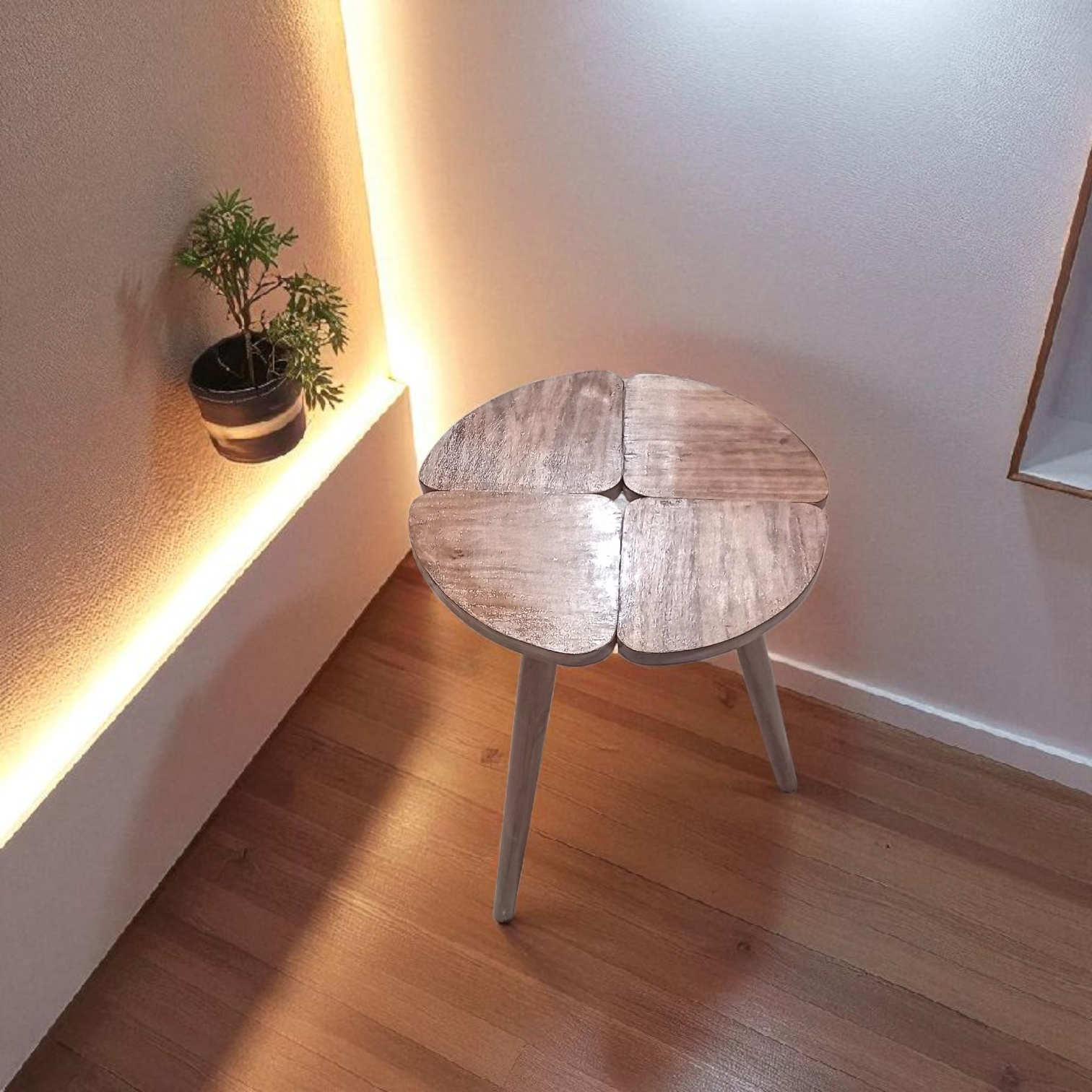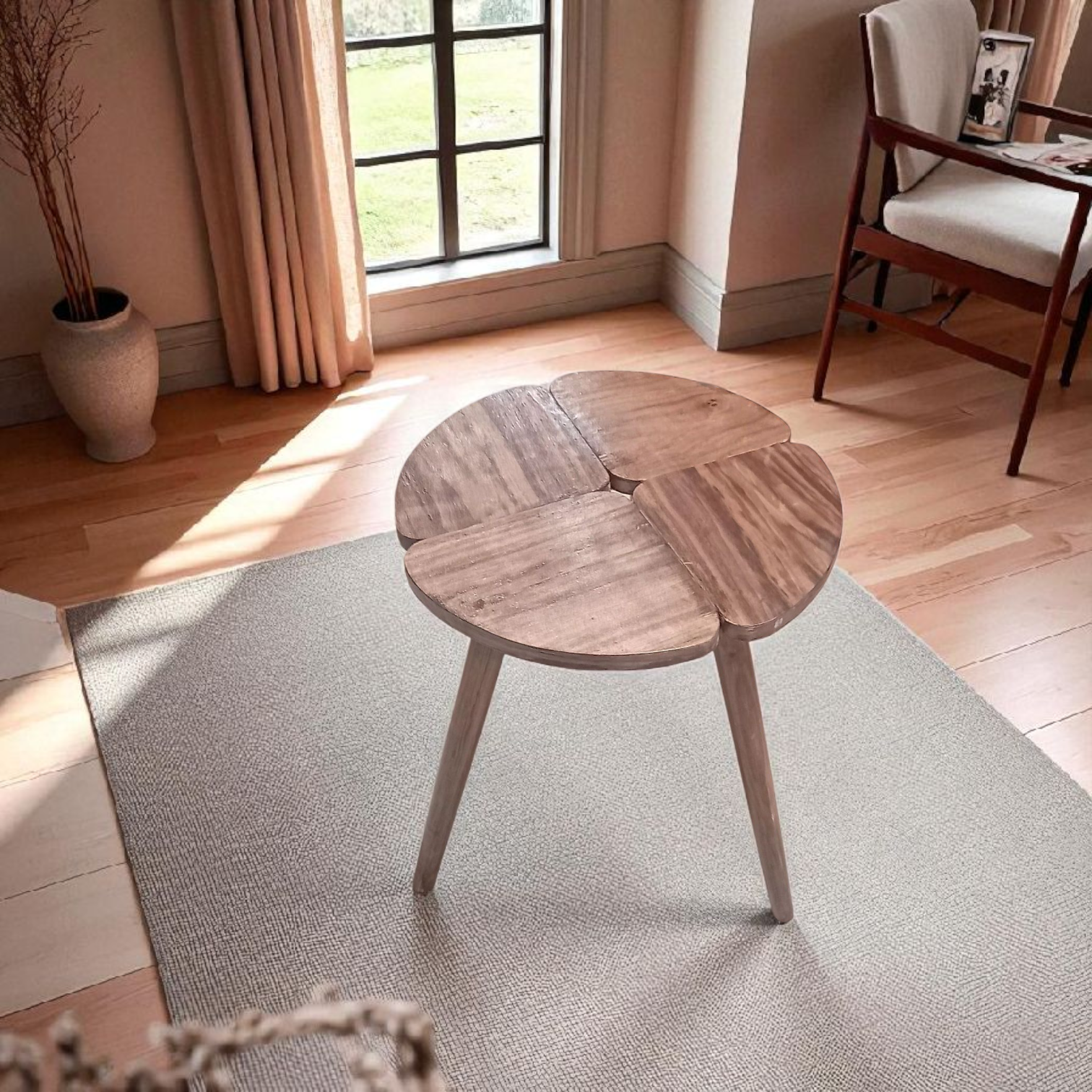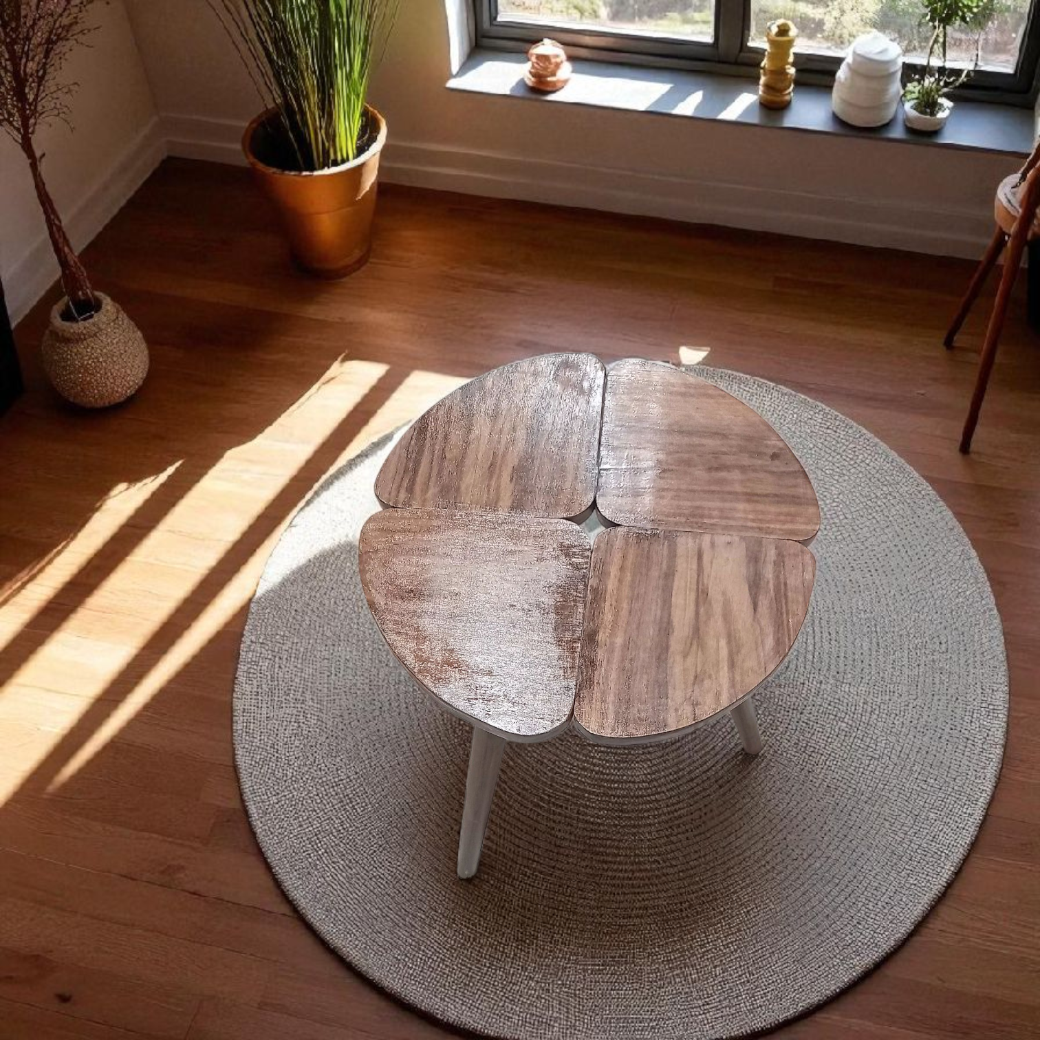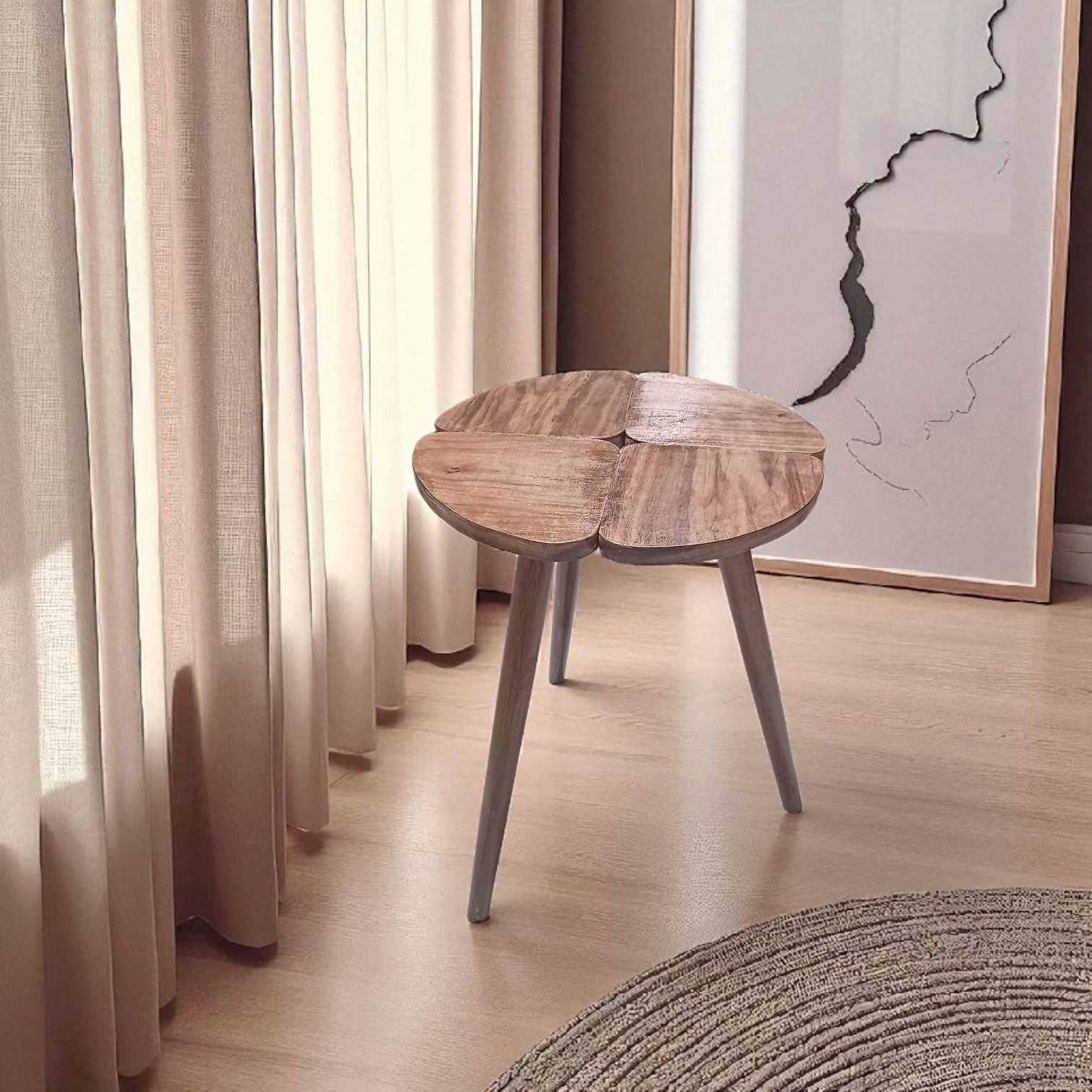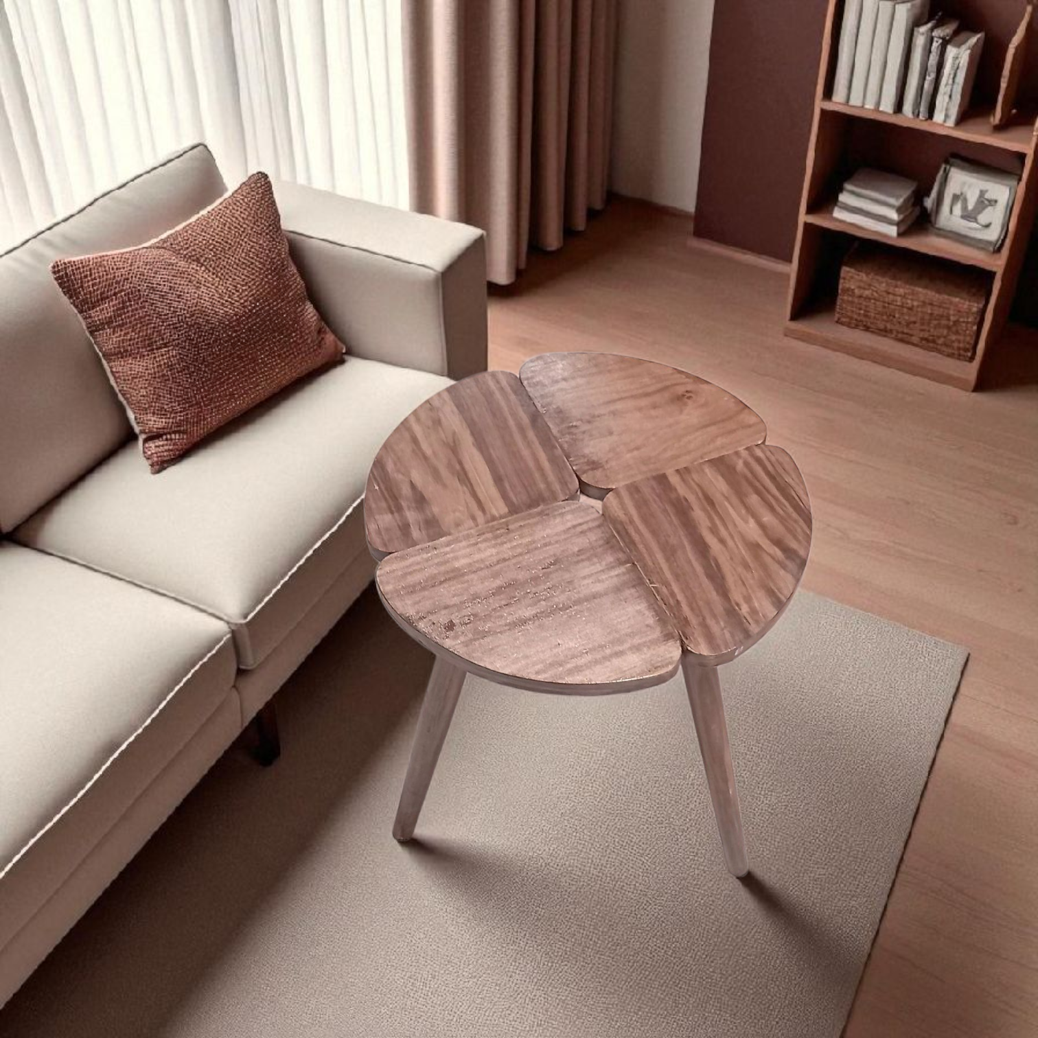 Un set harmonieux et polyvalent : utilisé ensemble, il forme une table basse moderne et originale, et séparément, de pratiques tables d’appoint. La finition noyer apporte une touche chaleureuse et élégante à votre intérieur