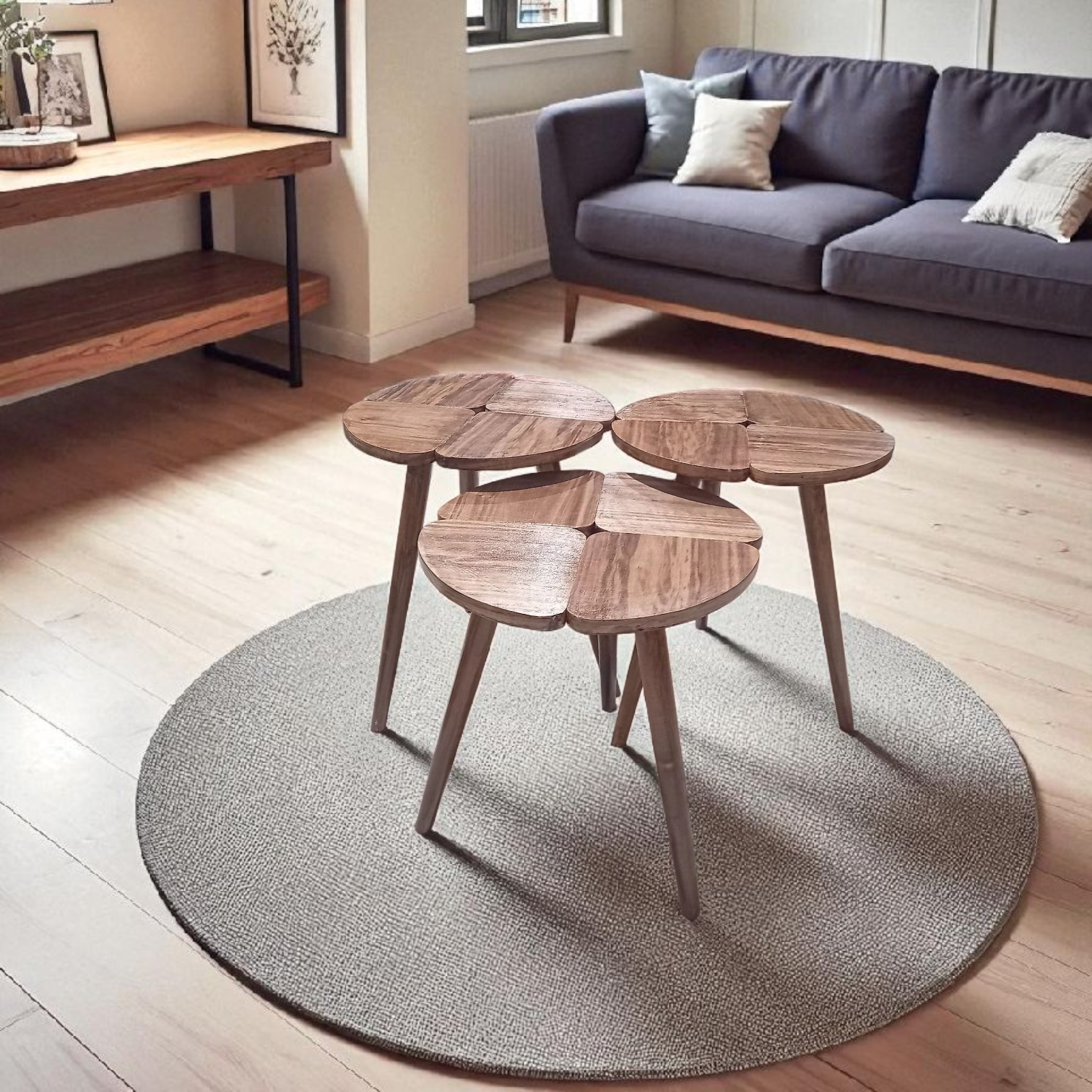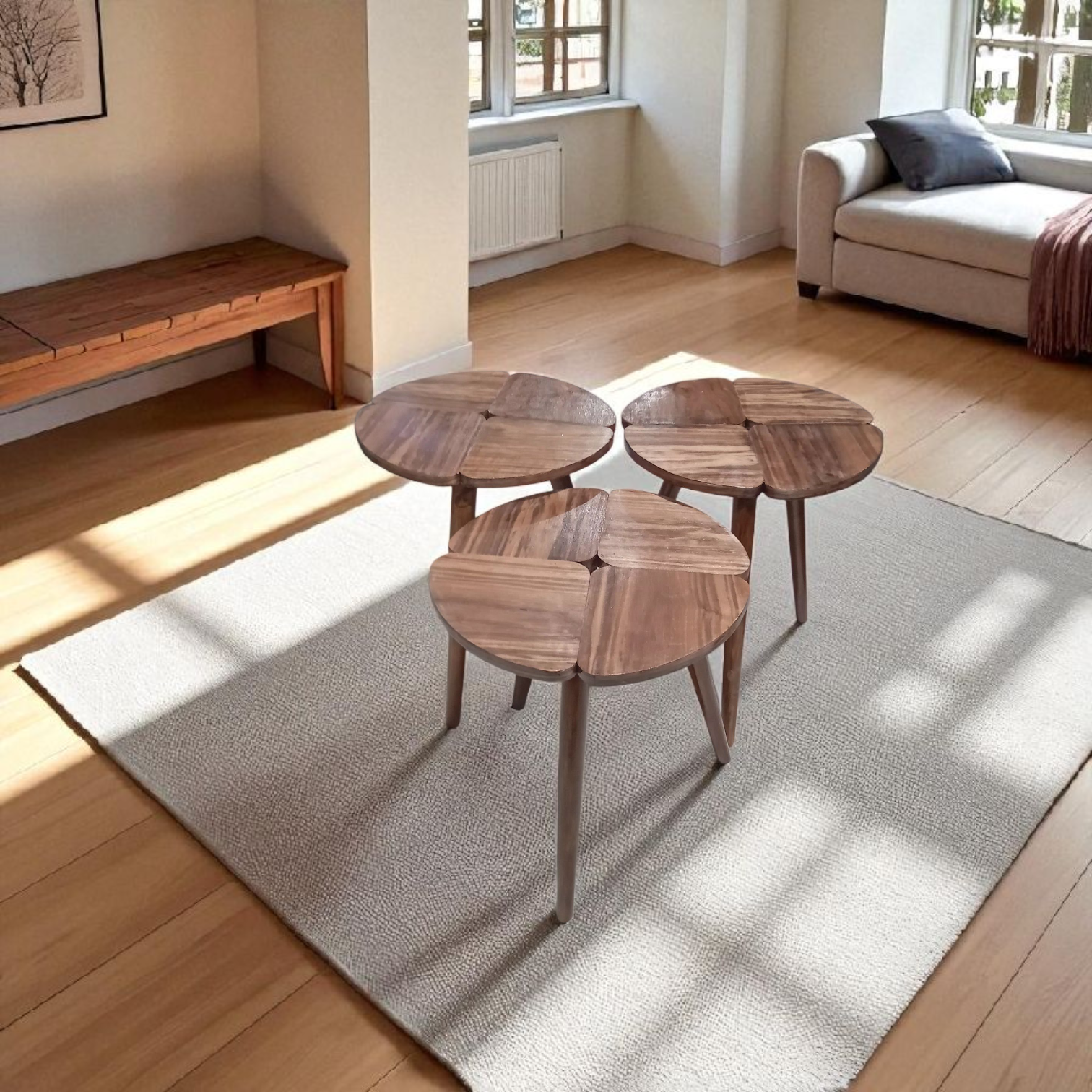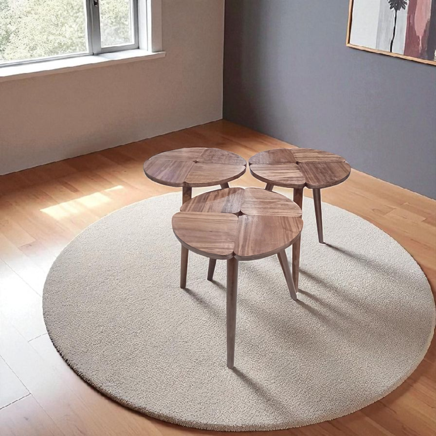 ✨ Série de 3 tables rondes en bois finition noyer
