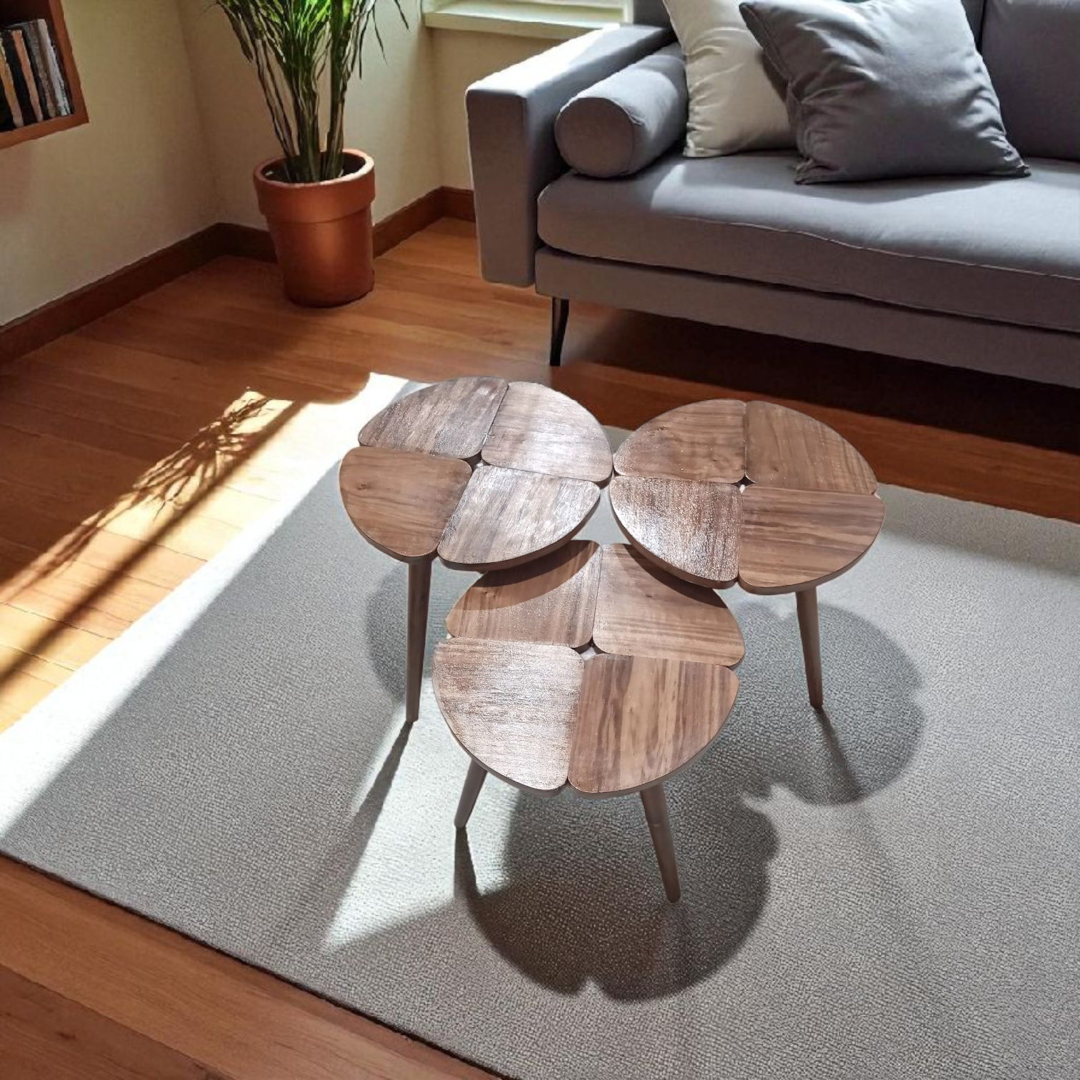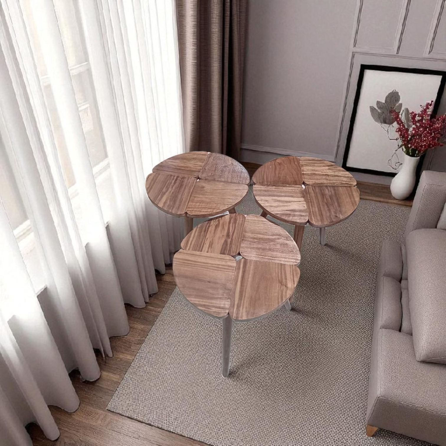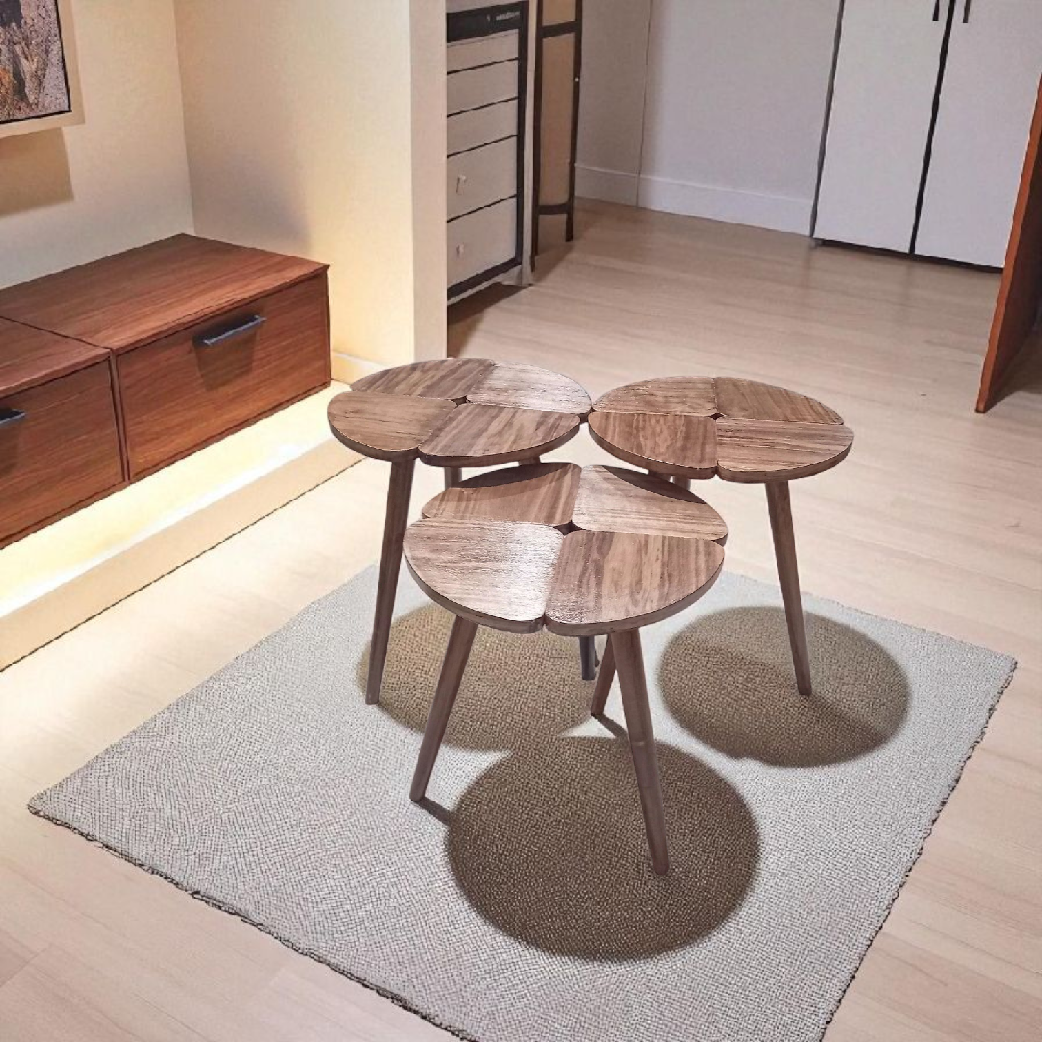 ✨ Série de 3 tables rondes en bois finition noyer