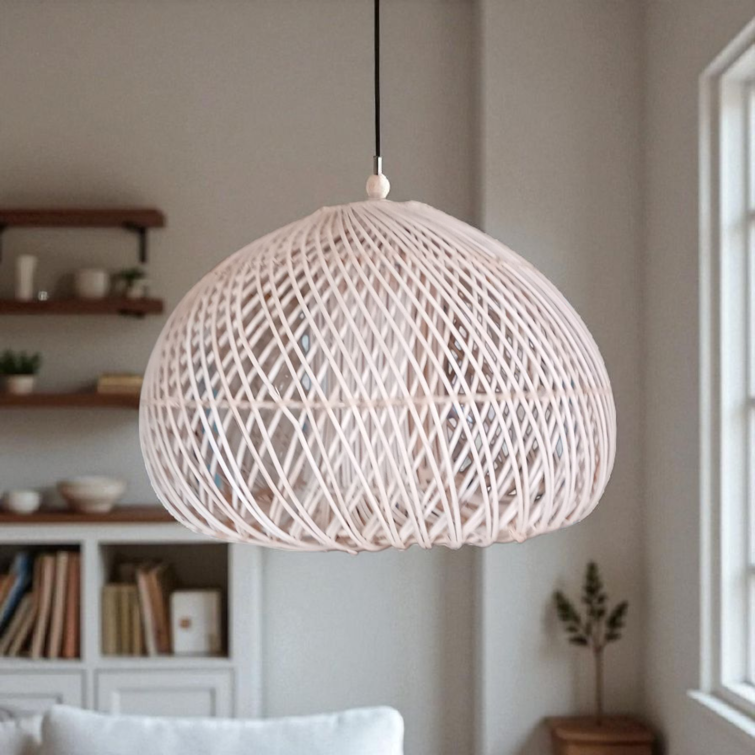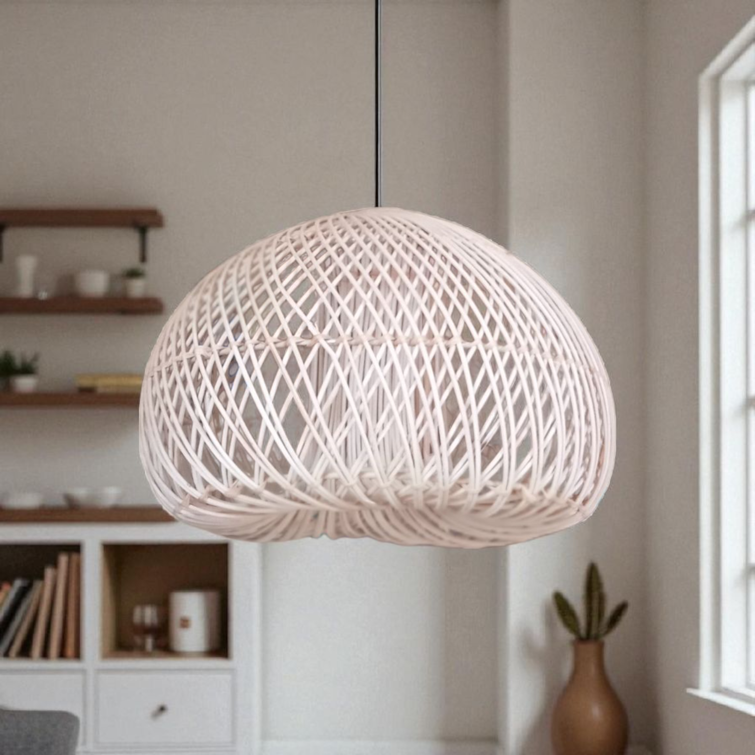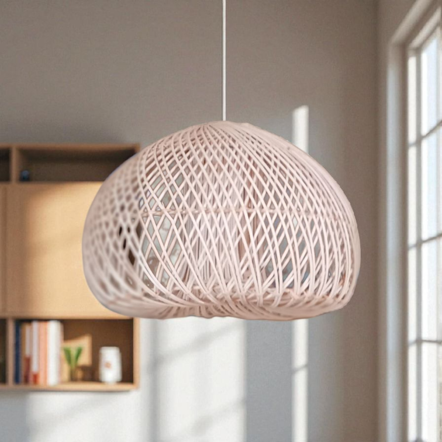Un design artisanal et moderne qui diffuse une lumière douce et chaleureuse, idéal pour le salon, la salle à manger ou la chambre