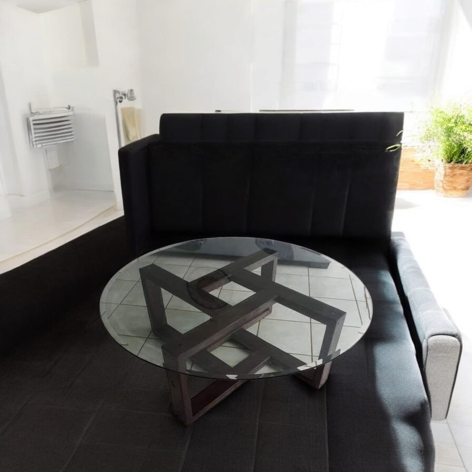 Cette élégante table basse ronde allie modernité et originalité. Son plateau en verre trempé de 8 mm d’épaisseur assure robustesse et sécurité tout en laissant apparaître son piètement artistique en bois , conçu dans un style géométrique entrecroisé. Son design unique crée un effet visuel captivant, faisant de cette table une pièce maîtresse idéale pour un salon contemporain ou un espace de réception.