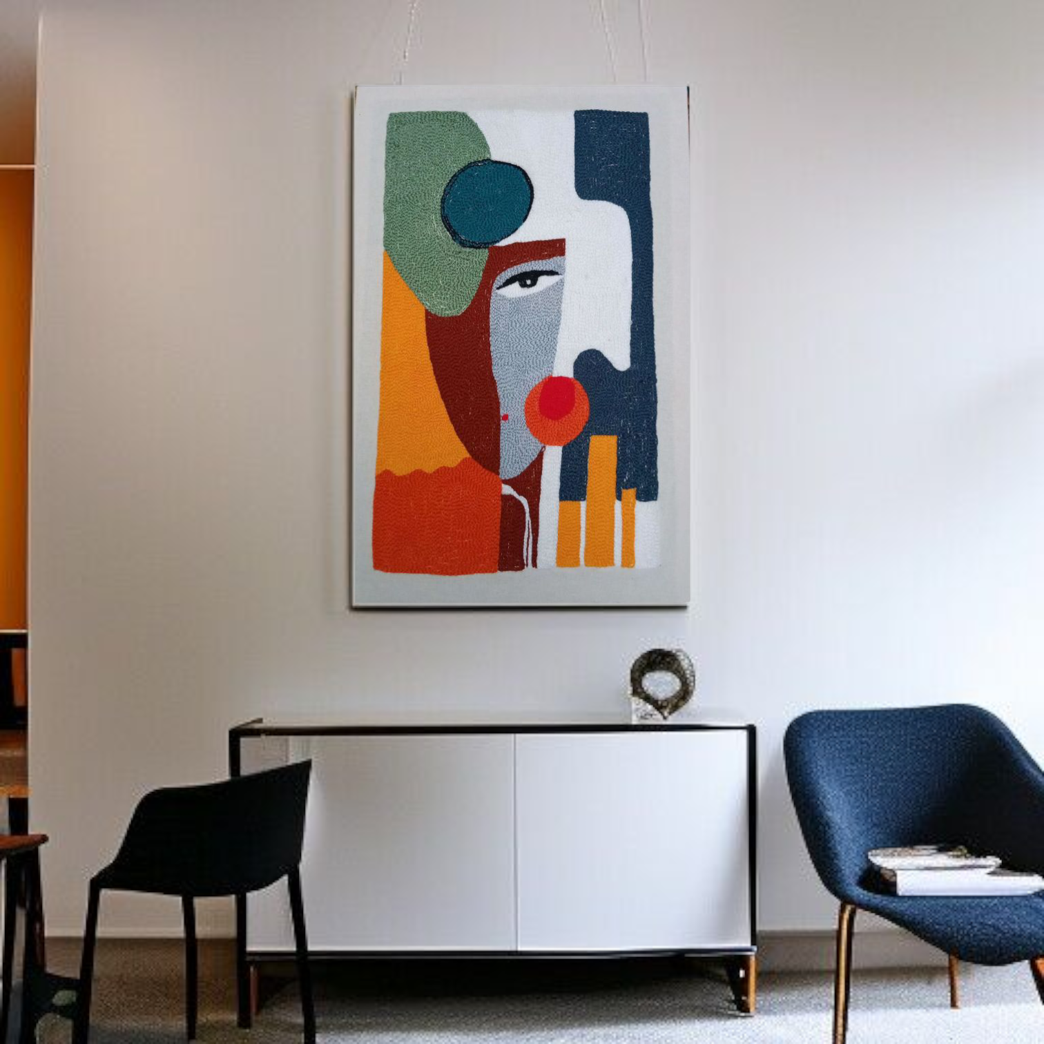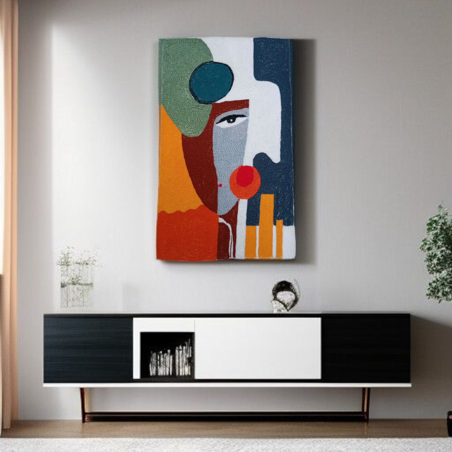Ajoutez une touche d’art moderne à votre intérieur avec ce tableau brodé à la main.