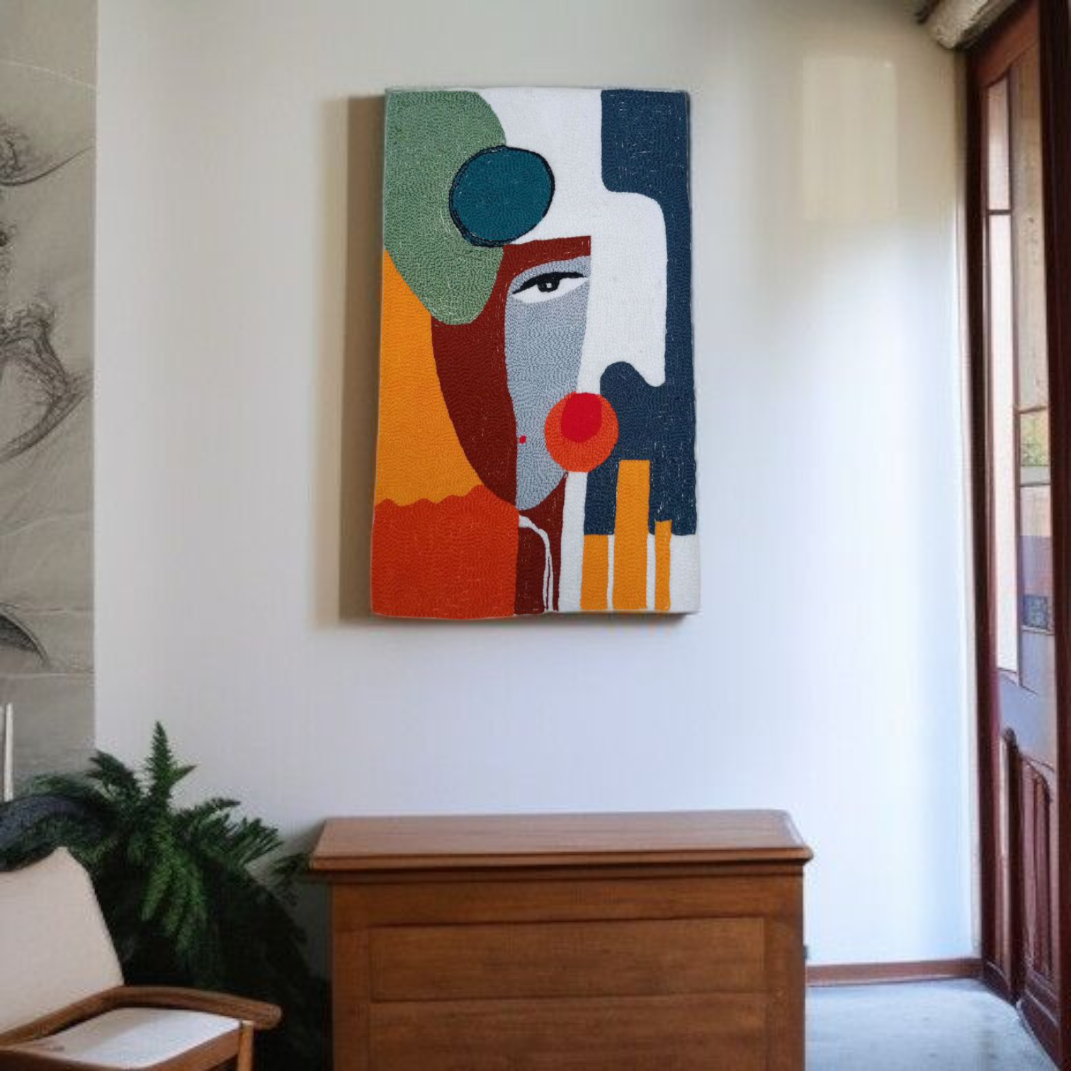 Tableau en Broderie 40×60 cm – Portrait Abstrait Coloré