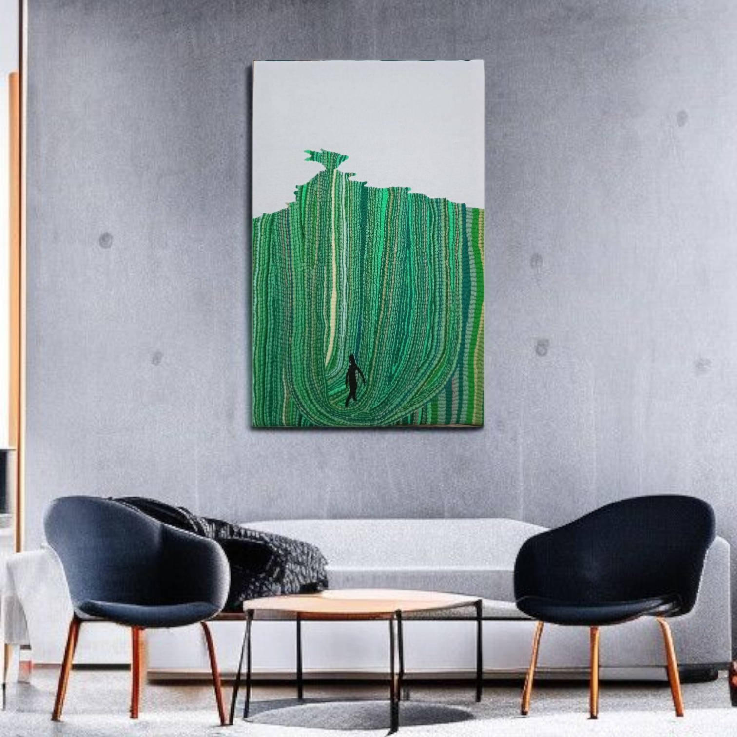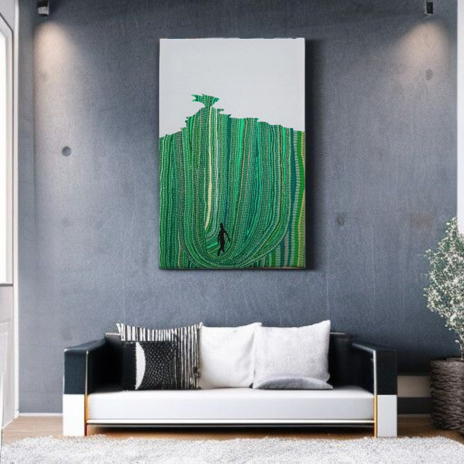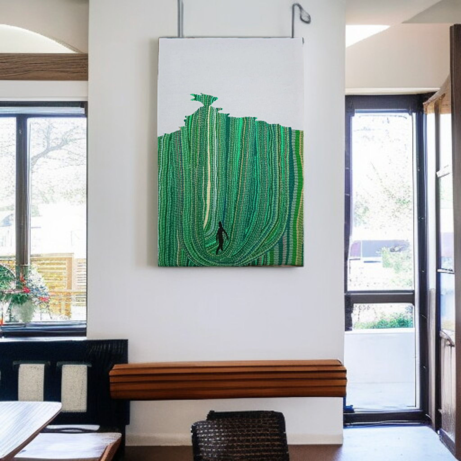 Ajoutez une touche d’art moderne à votre intérieur avec ce tableau brodé à la main.