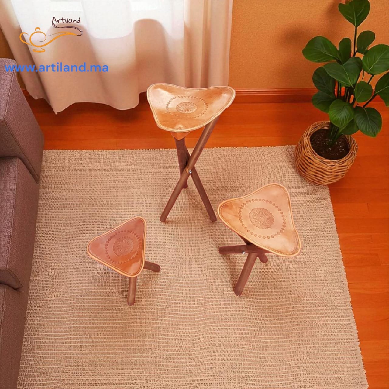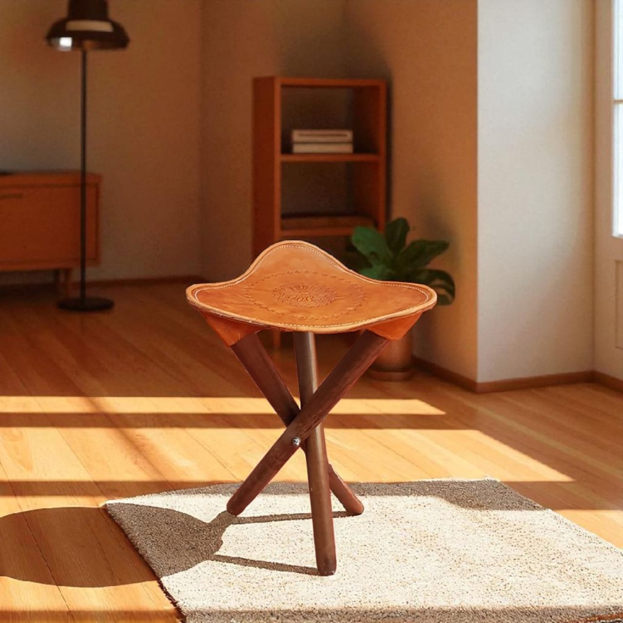 Tabouret artisanal pliable en cuir 36 cm