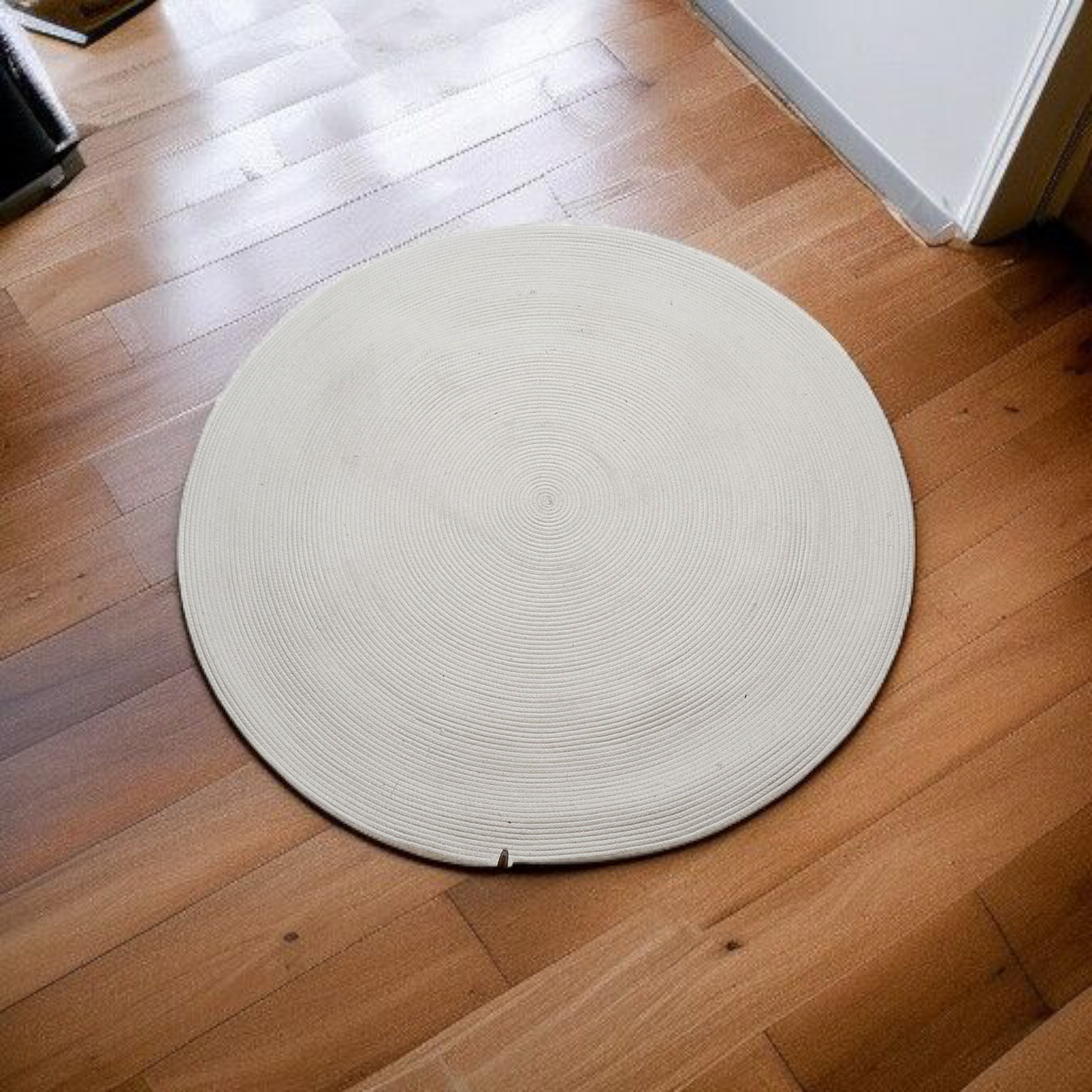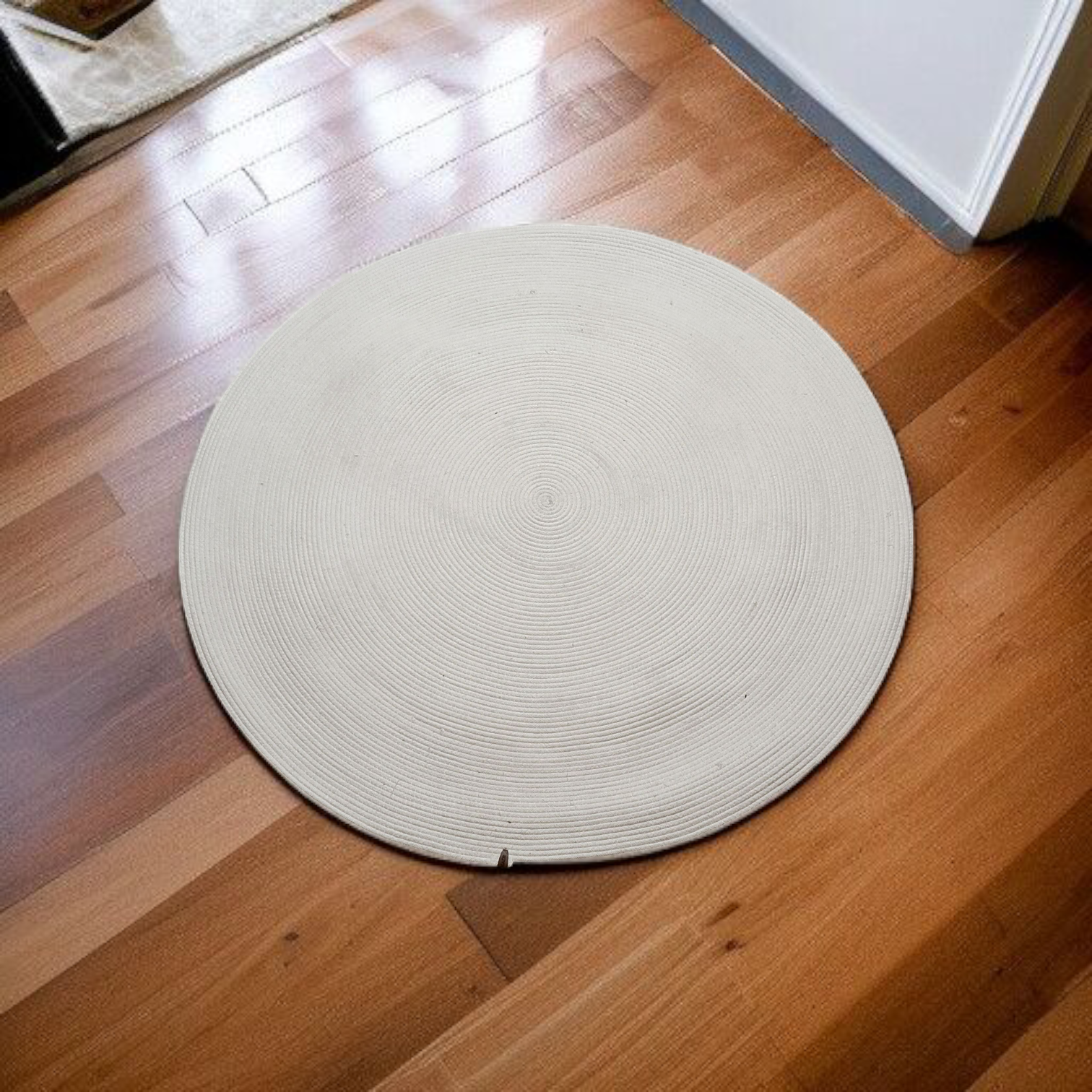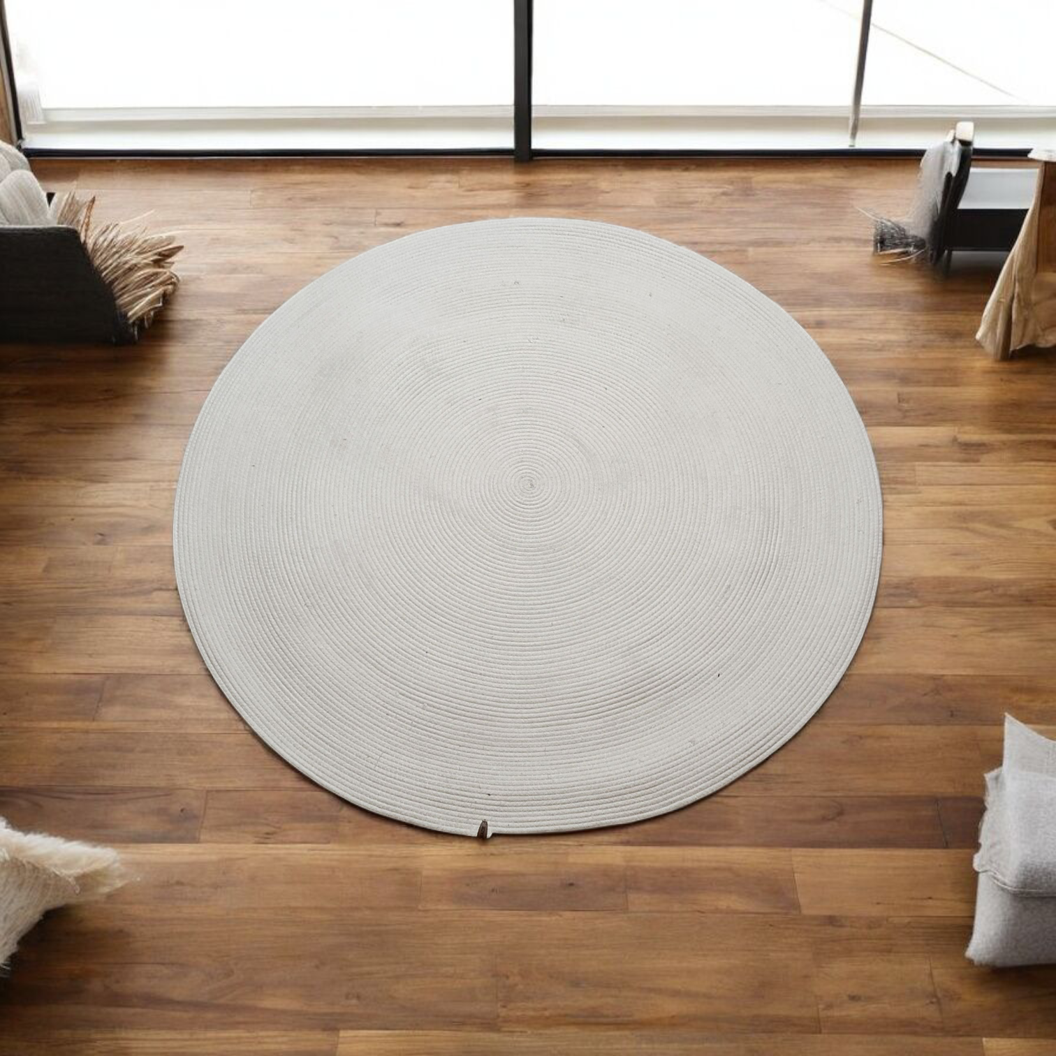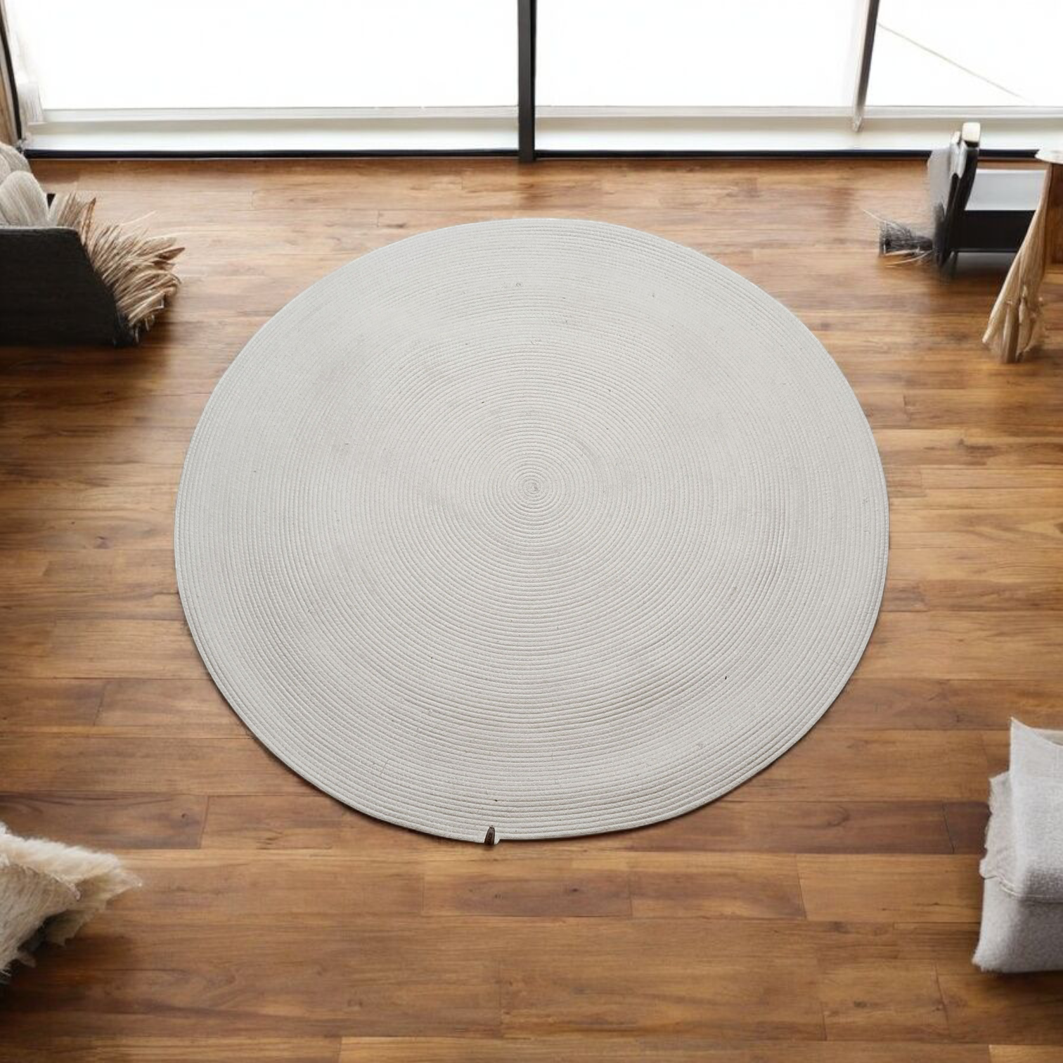 Tapis Rond en Broderie en Fil – Élégance Minimaliste